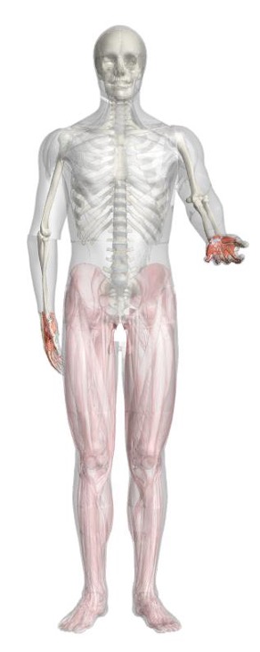 The first models are focused on the elbows with simple connections to the rest of the body. The axial region is treated as a black box with the capability to transfer and supply forces to the appendicular region. The lower limbs are represented by the bones and the superficial fascia with simple models. The modeling is done in Mathematica utilizing its anatomy data.